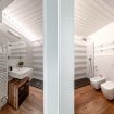 On the ground floor there is a spacious living area with kitchen and bathroom, while the mezzanine hosts the sleeping area.