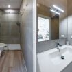 The bathroom is complete with all fixtures and includes a comfortable shower.