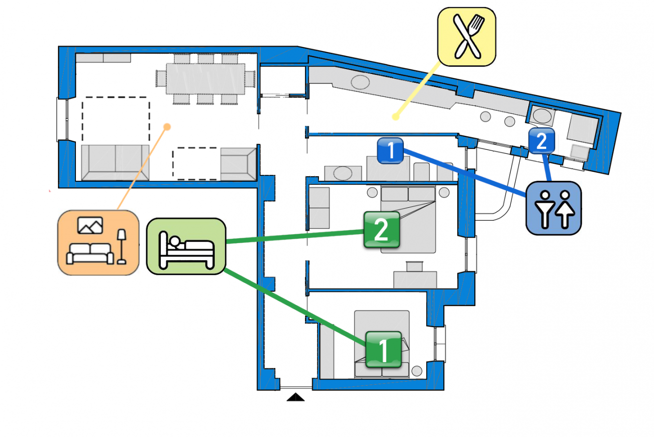 Prestigious and modern apartment with 2 bedrooms, a living room, kitchen with balcony, and 2 bathrooms, located just a 15-minute walk from the Duomo and steps away from the city’s main tourist attractions.