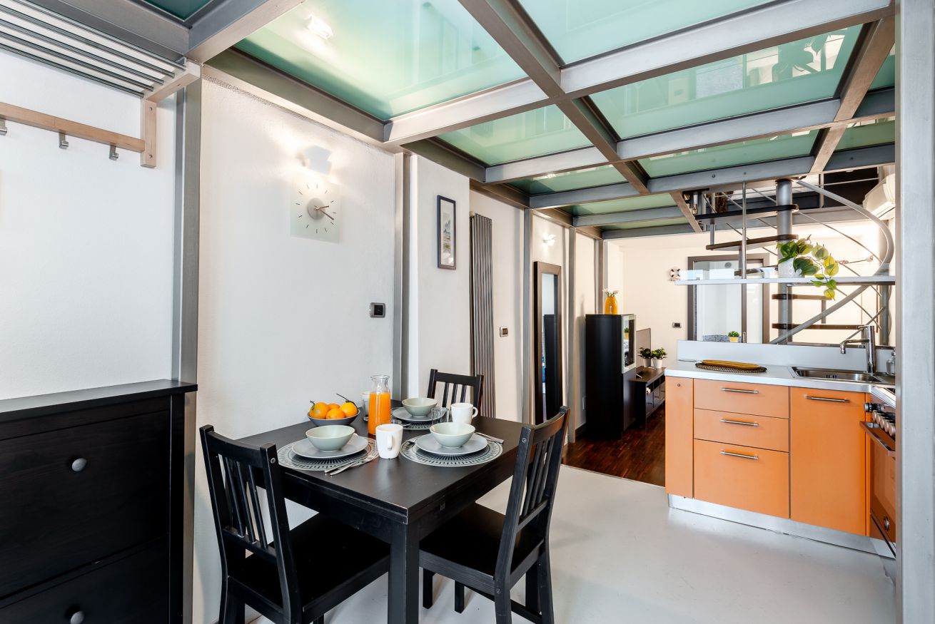The interiors are modern and functional, ideal for those looking for a cozy and well-organized space during their stay in Milan.