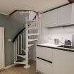 - on the ground floor living area with kitchen (with fridge, microwave etc.) and bathroom;
