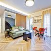 Living room with kitchen, 2 bedrooms, and a bathroom with high-end finishes.